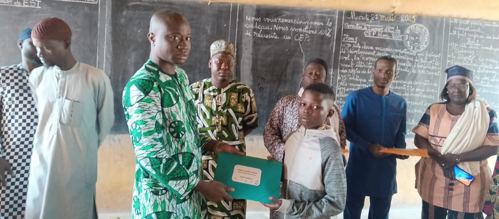 La matinée de ce mardi 27 mai 2025 a été particulière pour les écoliers de l’École Primaire Publique de Madina, située dans le premier arrondissement de Parakou. Ceux-ci ont accueilli dans la surprise générale une cérémonie de remise de kits scolaires initiée par le jeune leader Dassouki MOUTALA. Accompagné de sa délégation, il a offert des cartables garnis de fournitures aux candidats au Certificat d’Études Primaires (CEP), session de juin 2025.